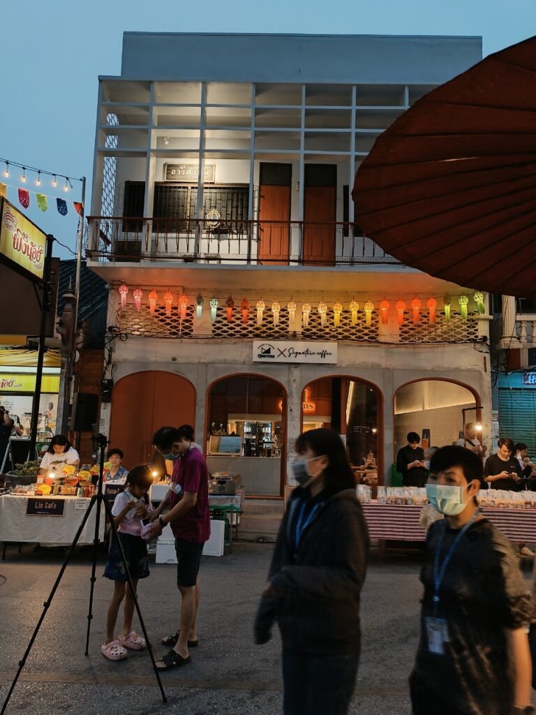 เสียงผู้คนพูดคุยกันระหว่างรับประทานอาหารบริเวณหนังกลางแปลง