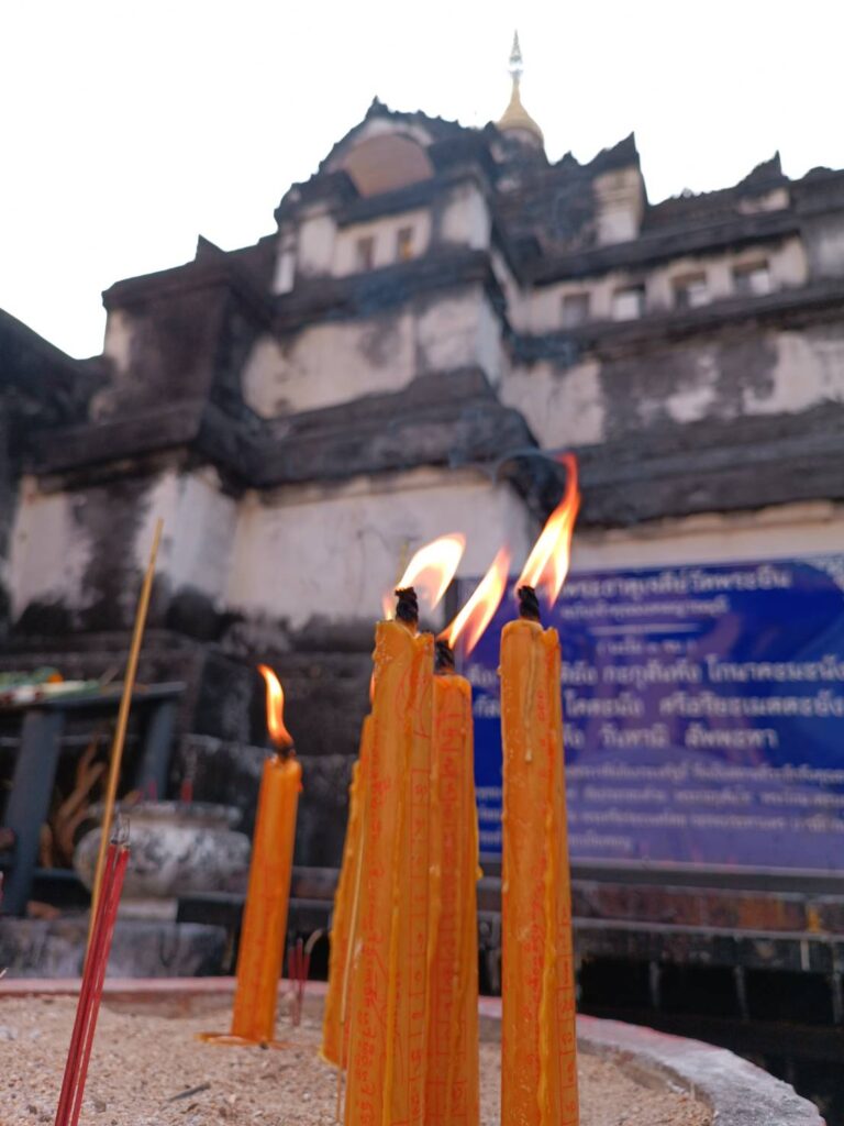 คำบรรยาย เสียงพระและอุบาสก อุบาสิกาสวดวันทาน้อยที่วิหารวัดพระยืน ก่อนที่จะไปเวียนเทียน